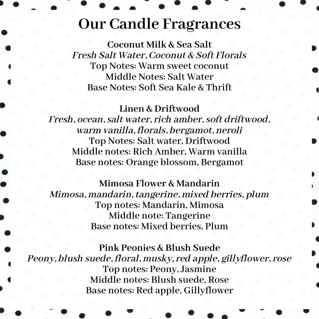 Your candle comes wrapped in our signature polka dot tissue paper, sealed with a simple sticker.